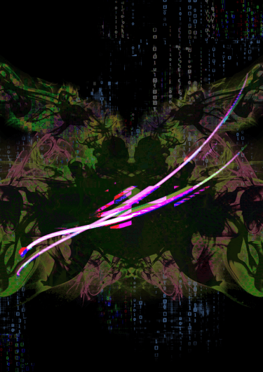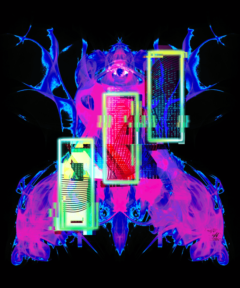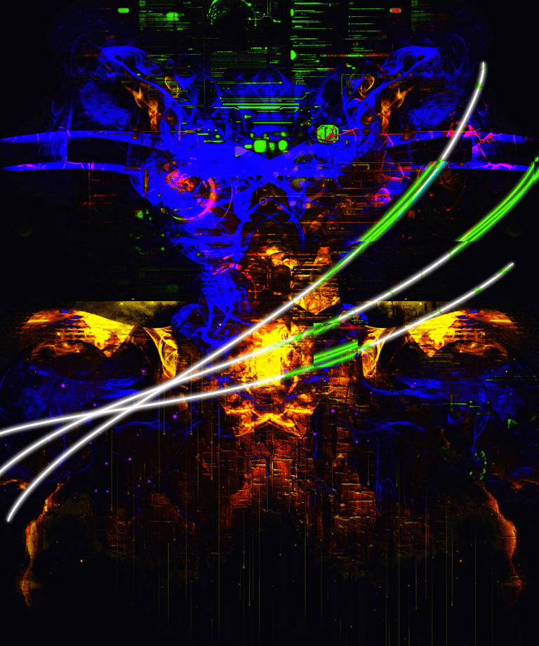 Three white soldiers rising through a Rorschach of light, the trader's eye, sharper than any signal